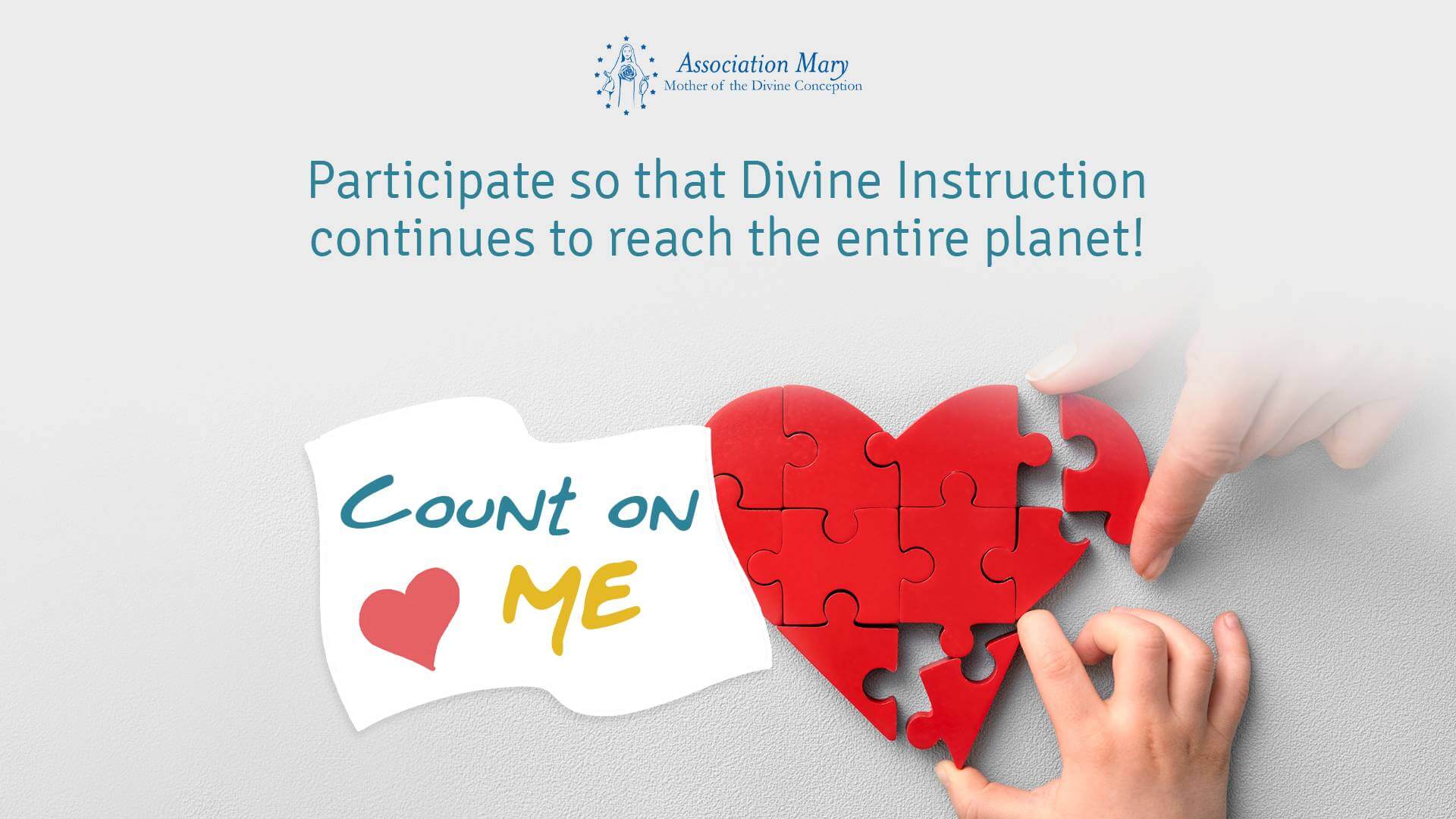 The Association Mary, founded in December 2012 at the request of the Virgin Mary, disseminates and8 supports all the activities indicated by the Divine Messengers. Of a humanitarian, ecumenical and cultural nature, it acts free of charge, enabling the Instruction of the Sacred Hearts to be disseminated to the whole world.